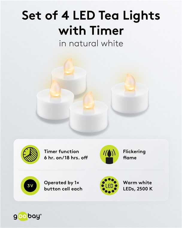 Zestaw 4 lampek herbacianych LED z wyłącznikiem czasowym, biały