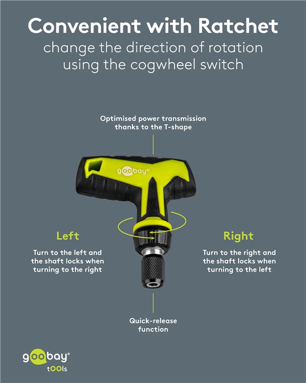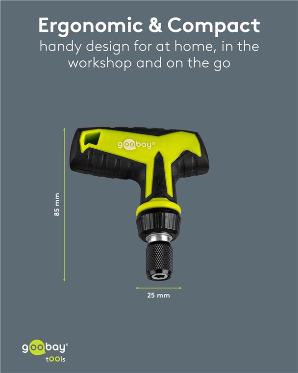 - Zoptymalizowane przenoszenie siły dzięki grzechotce T: 1x grzechotka z uchwytem T z gumowanym uchwytem i funkcją szybkiego zwalniania do łatwego wyjmowania bitów, otwór: 1/4 cala