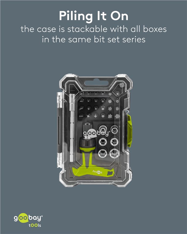 - Dzięki praktycznemu, kompaktowemu formatowi zestaw bitów można łatwo schować w każdej skrzynce narzędziowej i idealnie nadaje się do użytku mobilnego