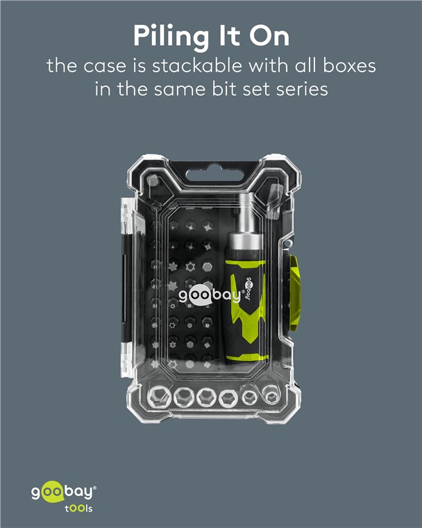 - Dzięki praktycznemu, kompaktowemu formatowi zestaw bitów można łatwo schować w każdej skrzynce narzędziowej i idealnie nadaje się do użytku mobilnego