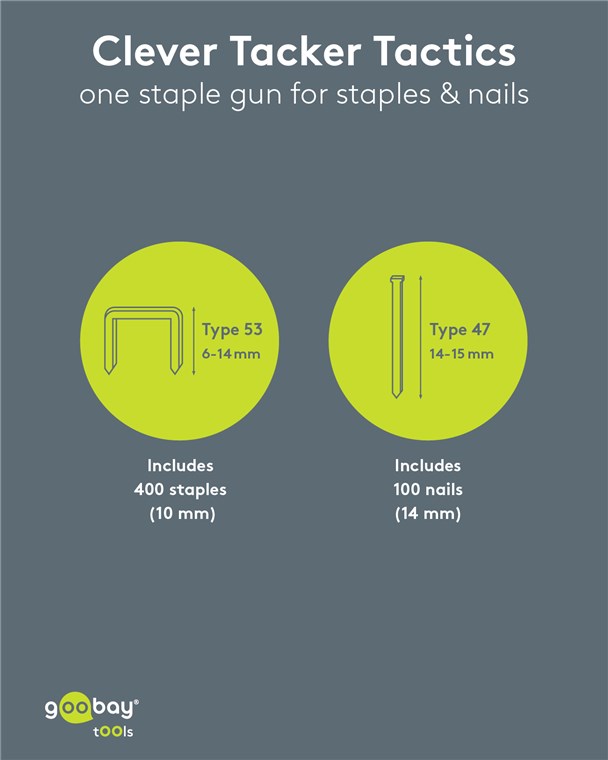 - Zszywacz i gwoździarka 2 w 1: zszywacz można zaopatrzyć w zszywki lub gwoździe, dzięki czemu można go elastycznie stosować również podczas prac remontowych