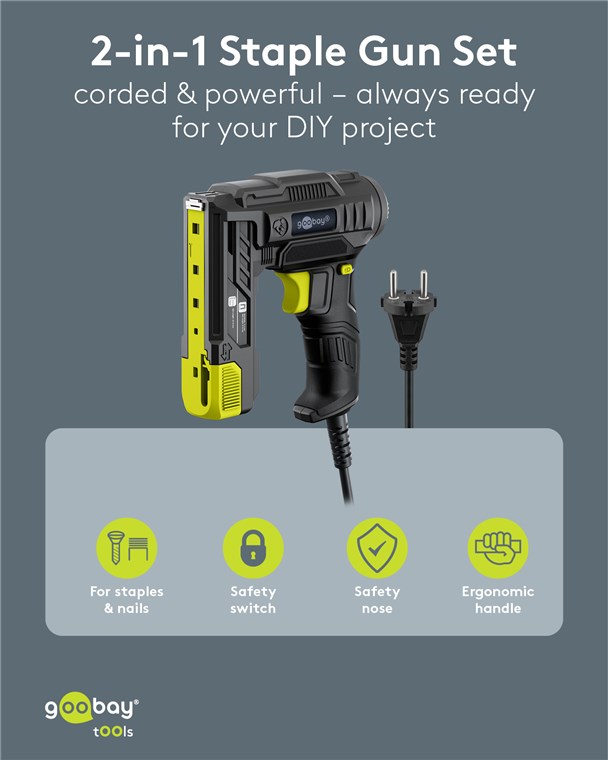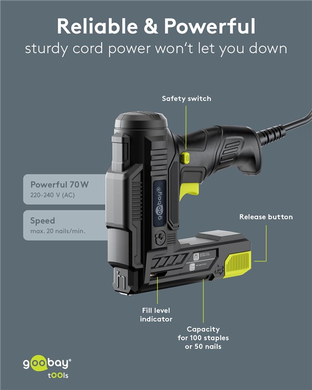 Wbij gwoździe w samo sedno: Gwoździarka elektryczna to potężny pomocnik przy naprawach mebli, pracach tapicerskich i mocowaniu materiałów izolacyjnych lub listew przypodłogowych. Gwoździarka przewodowa jest przeznaczona do dłuższej pracy.